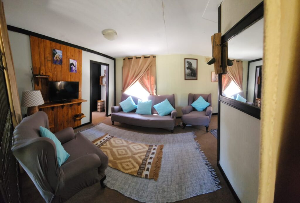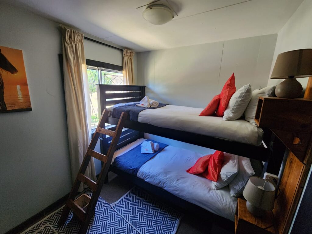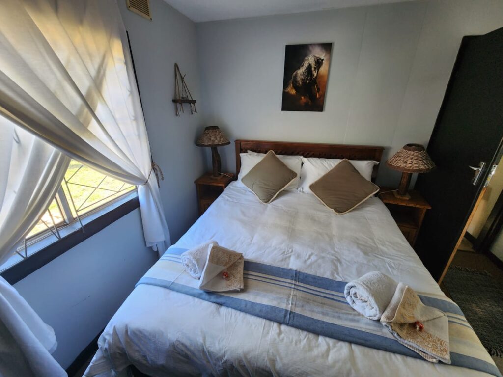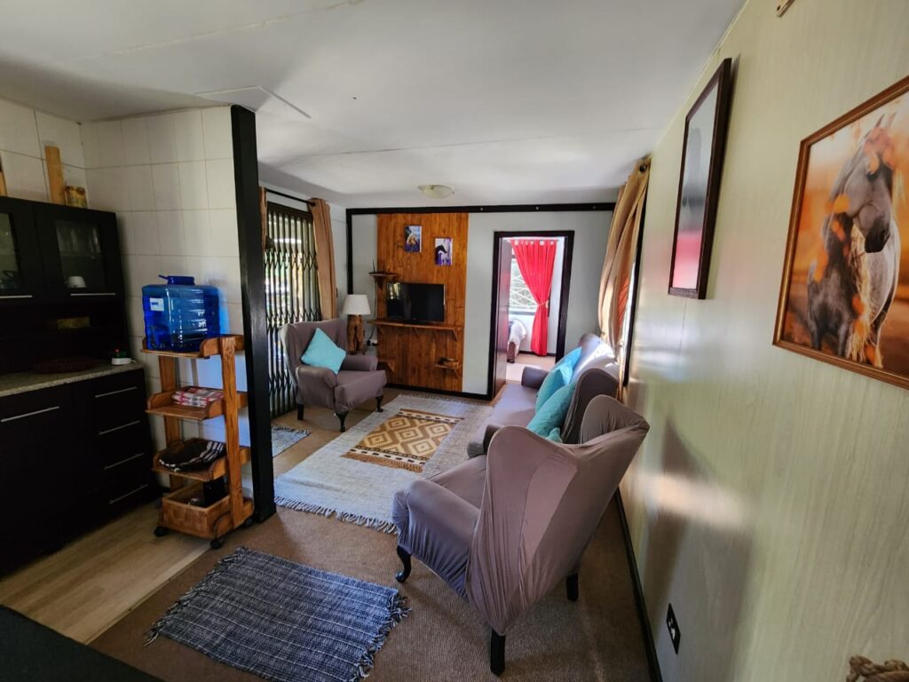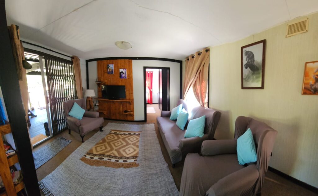 A large under cover deck at the front of the accommodation, boasts a lovely open braai area and relaxed farm setting to unwind during the days and evenings. There is free Wi-Fi and Netflix available.