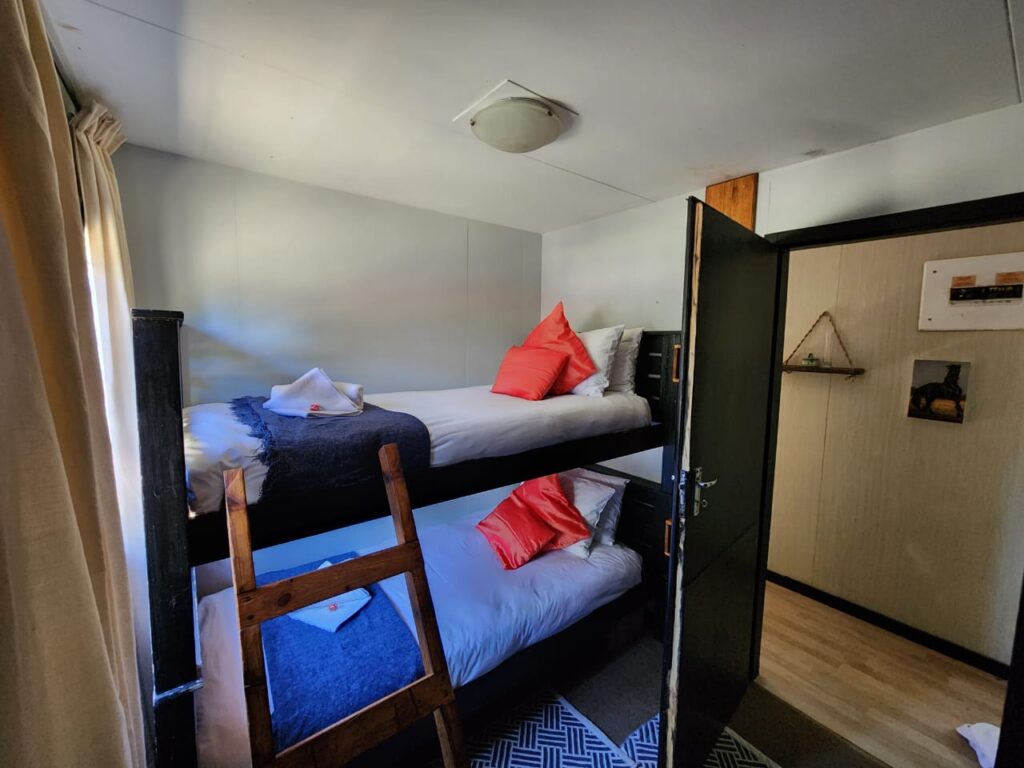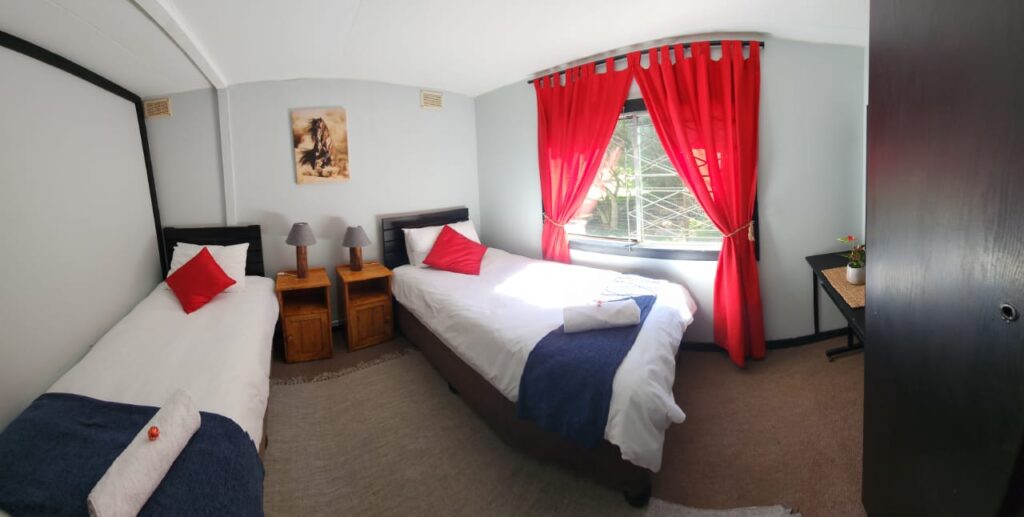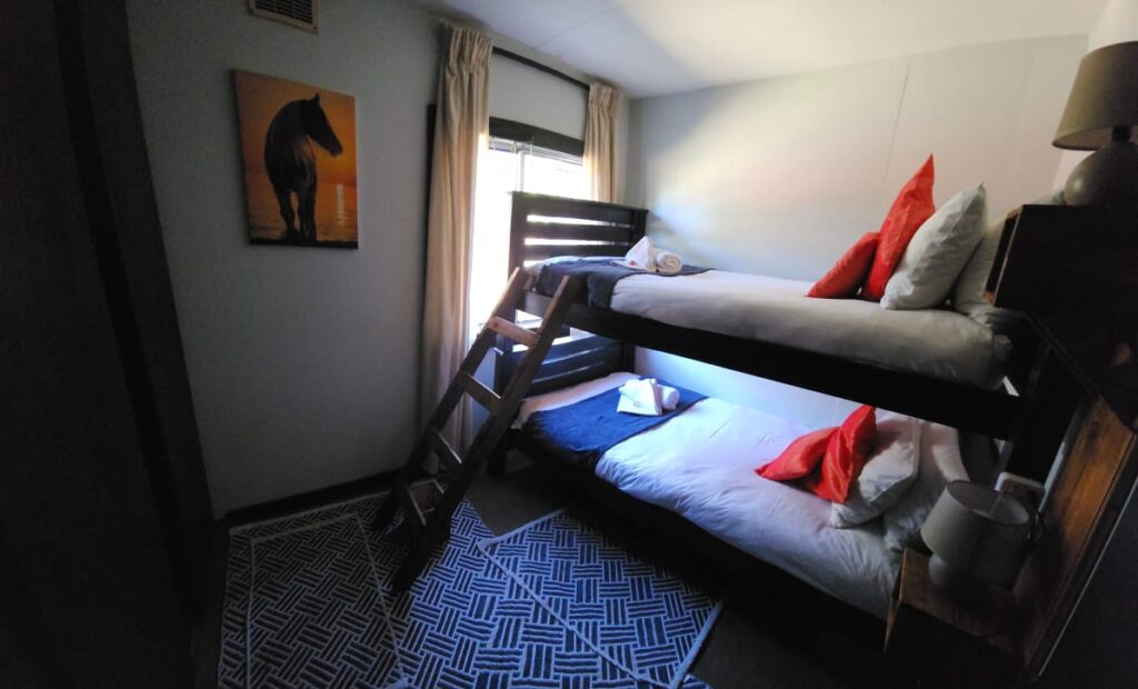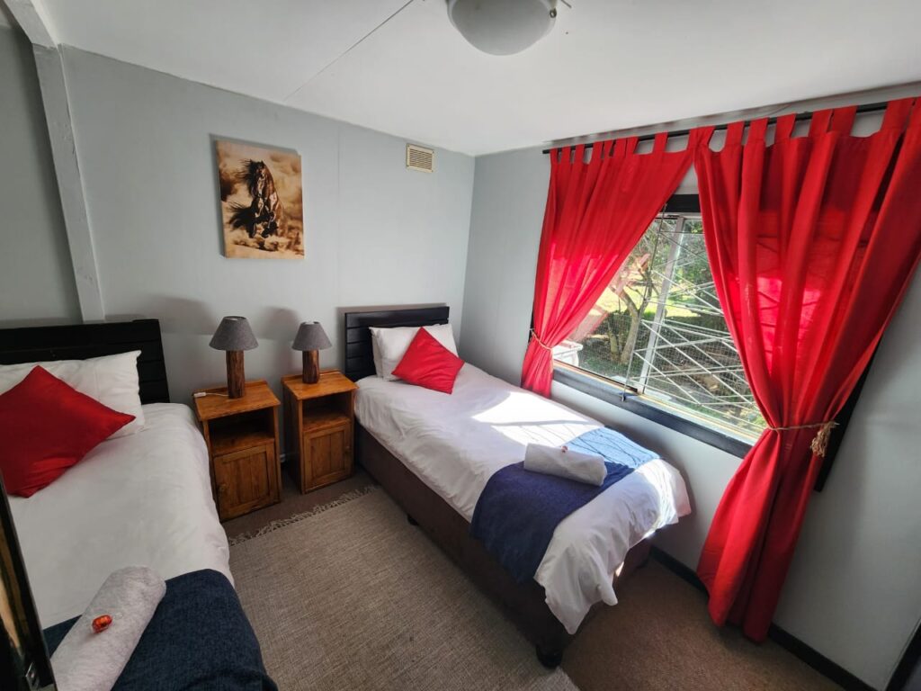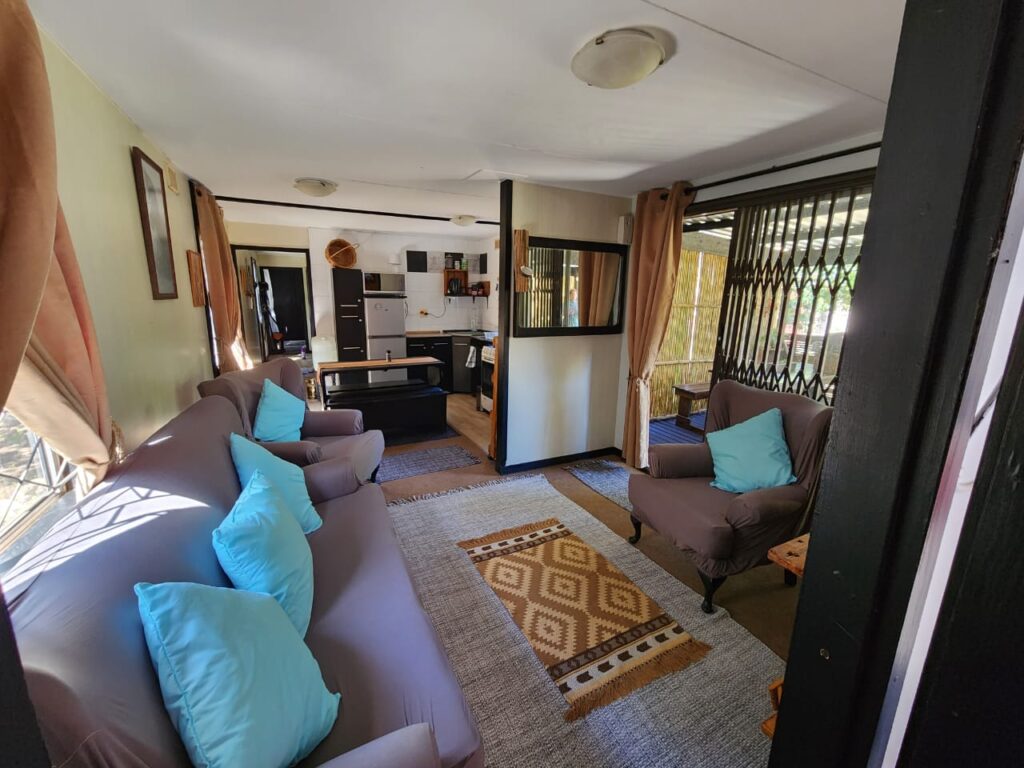 A large under cover deck at the front of the accommodation, boasts a lovely open braai area and relaxed farm setting to unwind during the days and evenings. There is free Wi-Fi and Netflix available.
